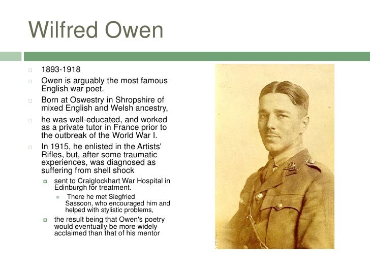 English soldier wilfred owen is perhaps the most famous war poet in that sense.
