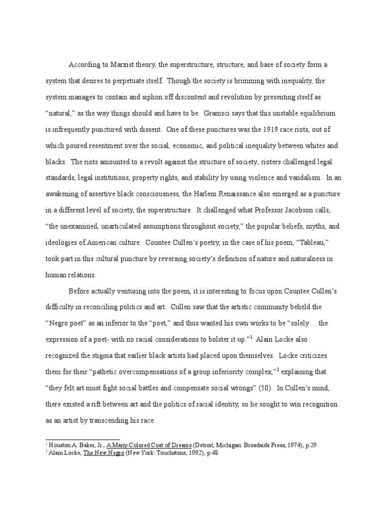 Cullen is most famous for his poetry, and poems like incident, (published in 1925 in the book color), heritage, and yet do i marvel helped define what it meant to be black in america in the years after the first world war. His life story is essentially a tale of youthful exuberance and talent… on these i stand: How much has poem analysis donated to charity?