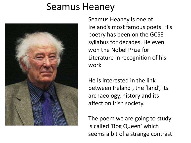 Seamus heaney was an acclaimed irish poet and lecturer, also considered to be a remarkable playwright and translator.