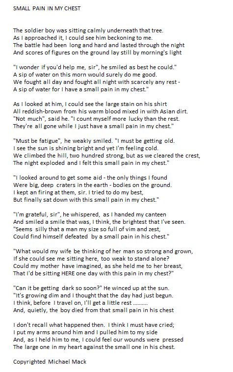 Small pain in my chest: Michael mack's boyhood dream of becoming a catholic priest ended when his pastor first invited him to the rectory. The date the poem was submitted (not necessary published) is also. He is now a member of the florida state poetry association.